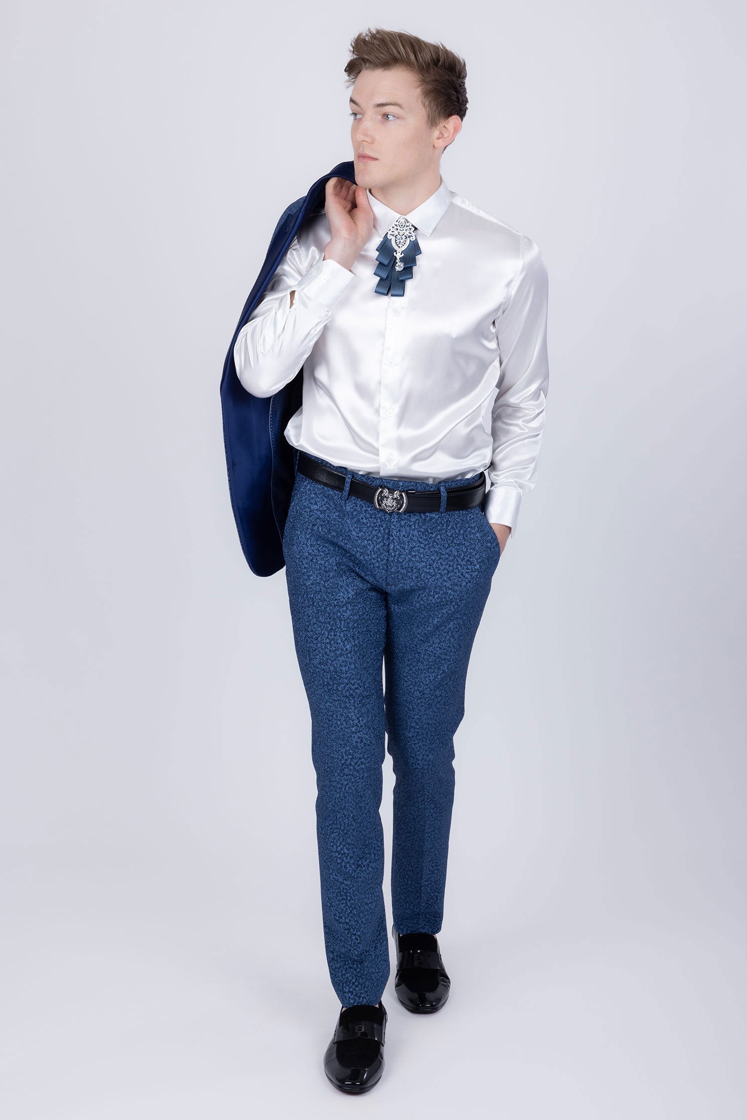 This essential is the Chennai Sparkling Suit Outfit, perfect for any fashionable gentleman's closet. Featuring a cheetah print design, along with a lightweight, solid-colored blazer and trousers set, this classic suit provides unparalleled comfort and elegance. It is a necessity for all formal events, including the workplace, weddings, and celebrations.