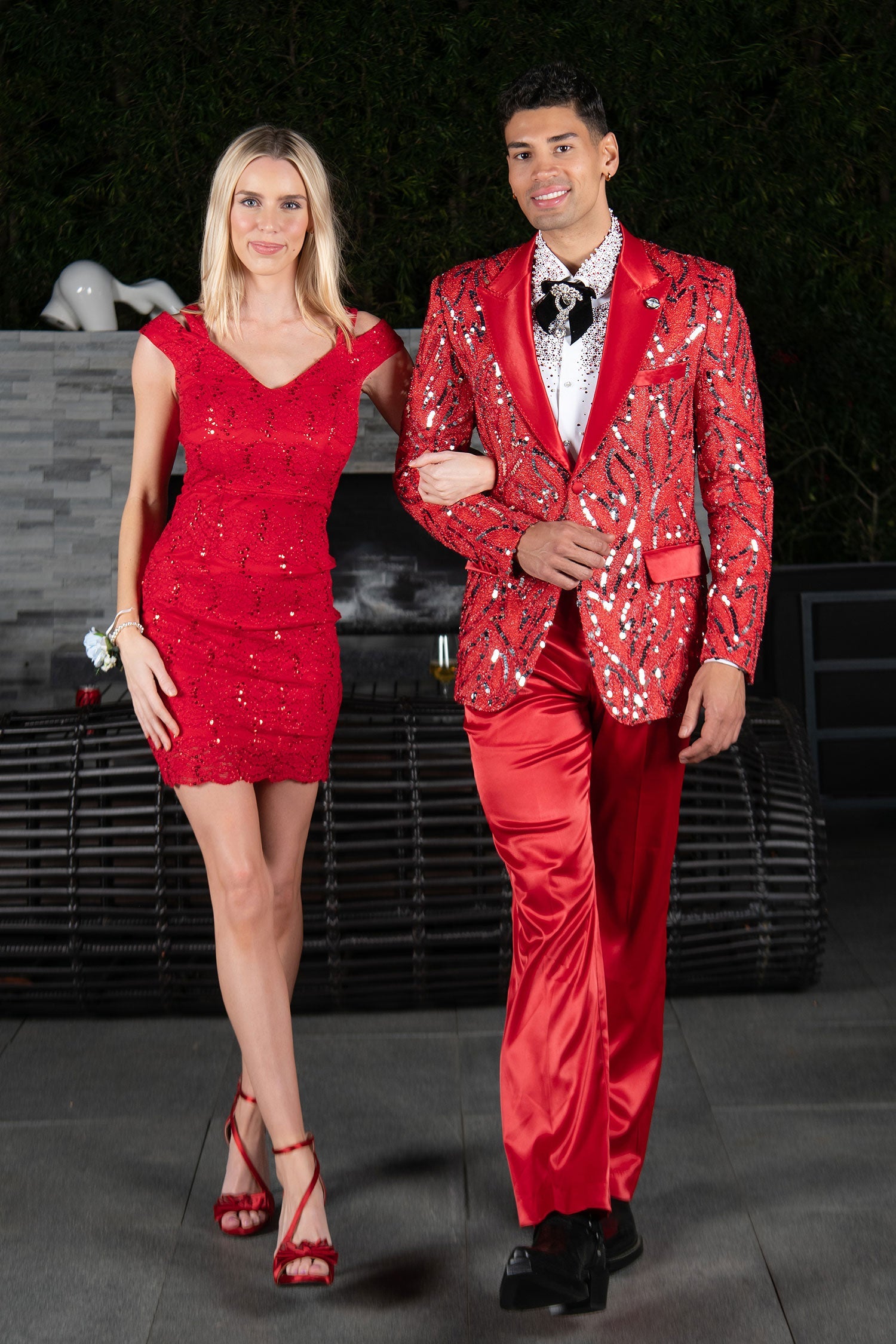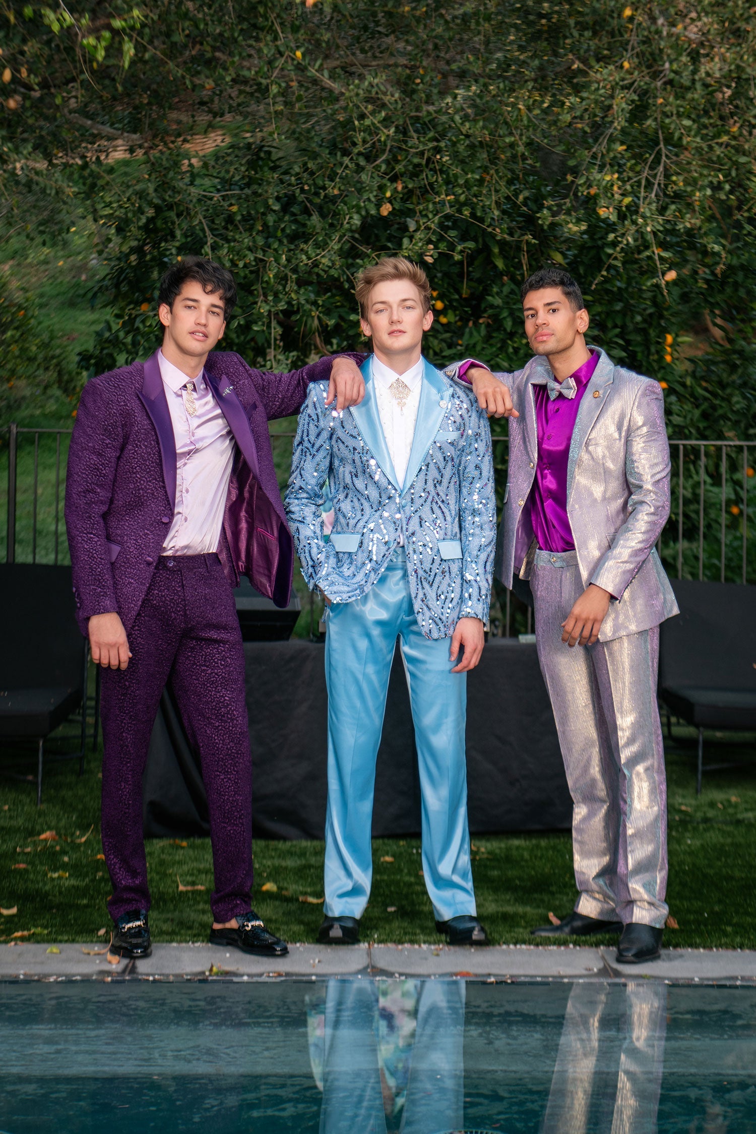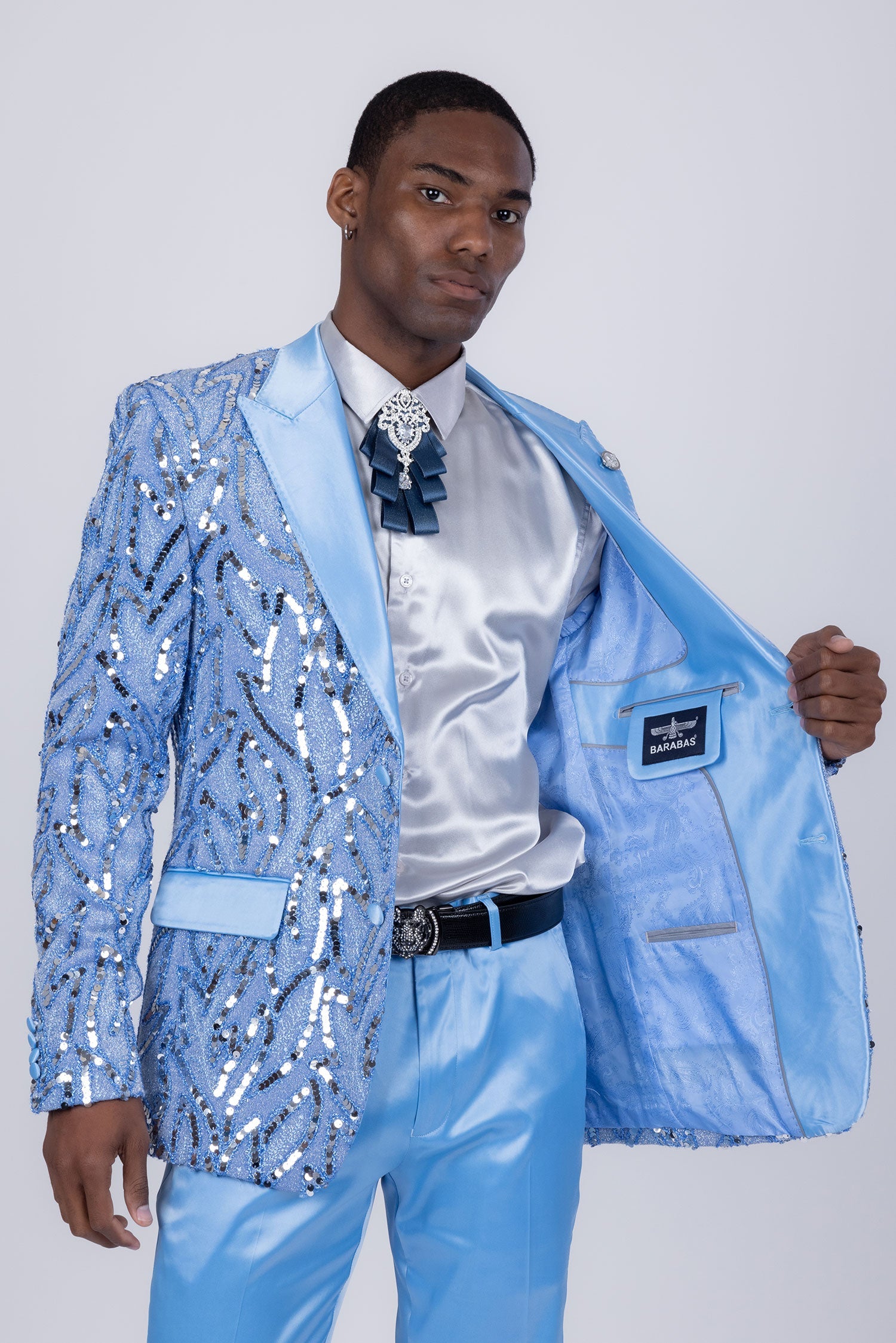 The Collins Sequins men's blazer boasts an elegant display of floral embroidered pattern, elevating it above other options and exuding a strong, captivating presence. Its adaptable style seamlessly shifts from a refined suit when paired with matching trousers, to a relaxed vibe when paired with dress shirts.