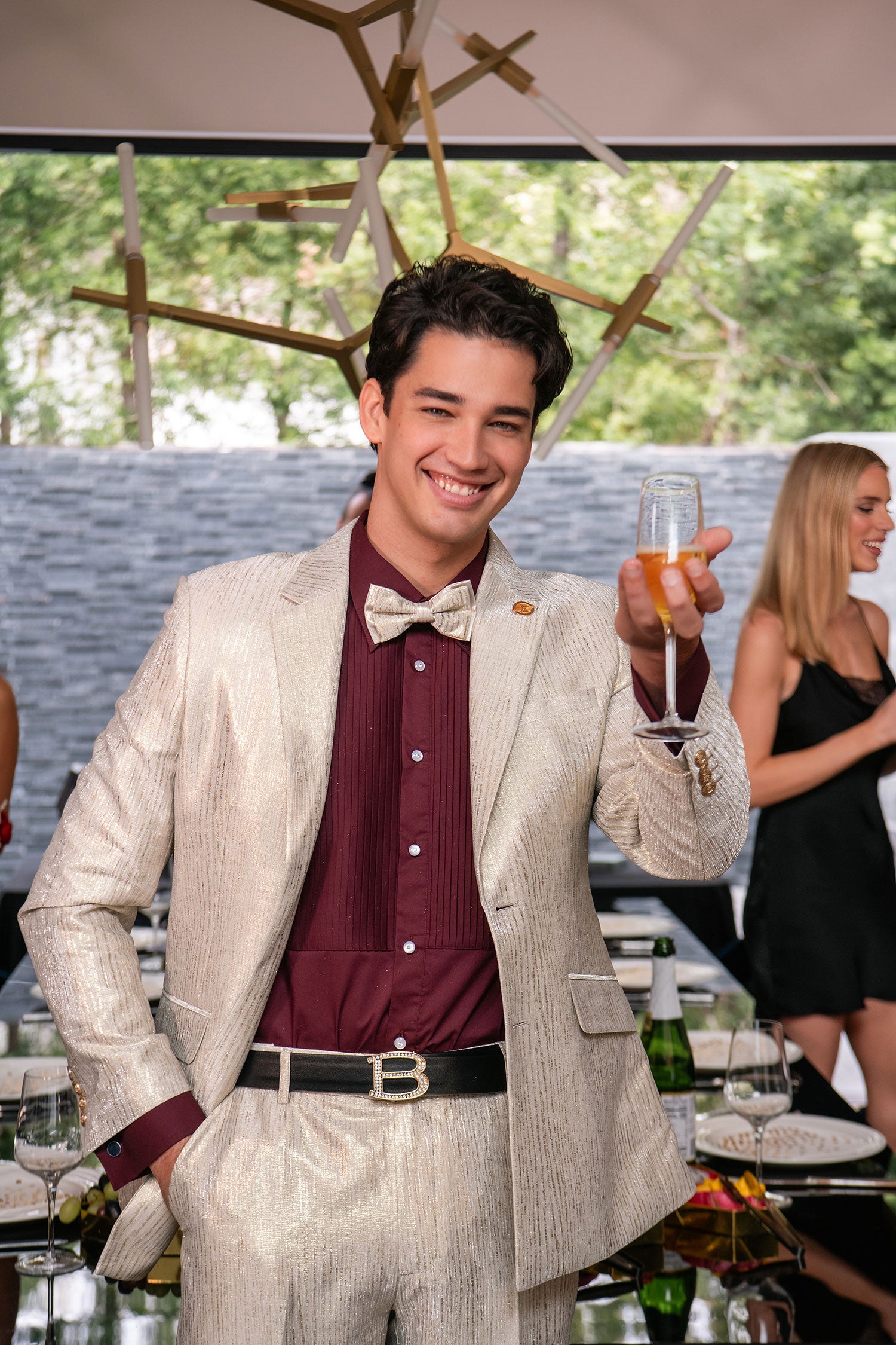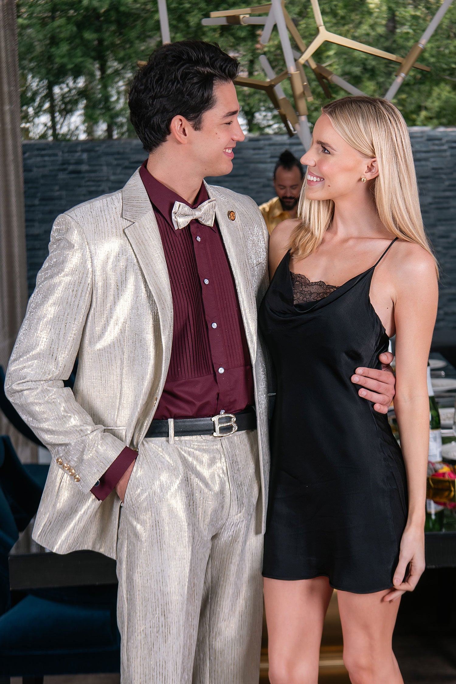 Upgrade your wardrobe with the Durban Shiny Suit. This classic suit is expertly crafted from lightweight fabric in a pin stripe color, providing comfort and sophistication. Perfect for formal events, from the office to weddings to parties, with its adjustable waist trousers and 2-button front closure.