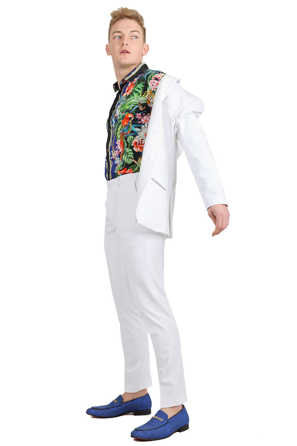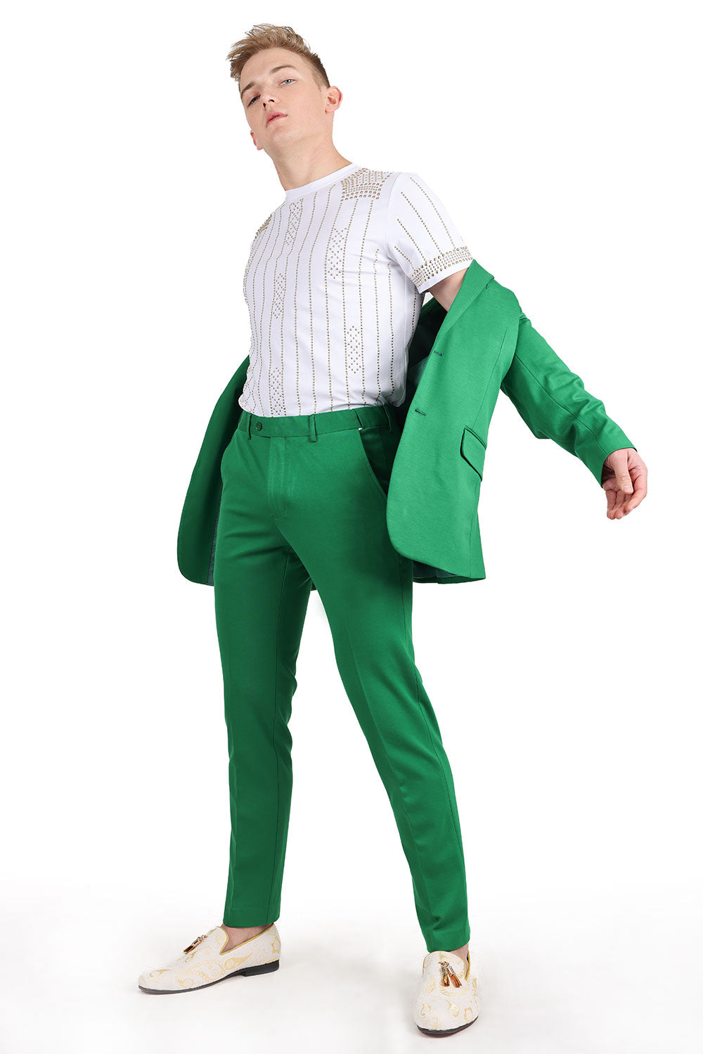 This Barabas men's suit is specifically tailored for men seeking a timeless formal look. It features a solid color blazer and trousers and offers superior comfort, perfect for any office, wedding, or party occasion. Essential for the modern man’s wardrobe, the suit adds a touch of sophistication to any ensemble.