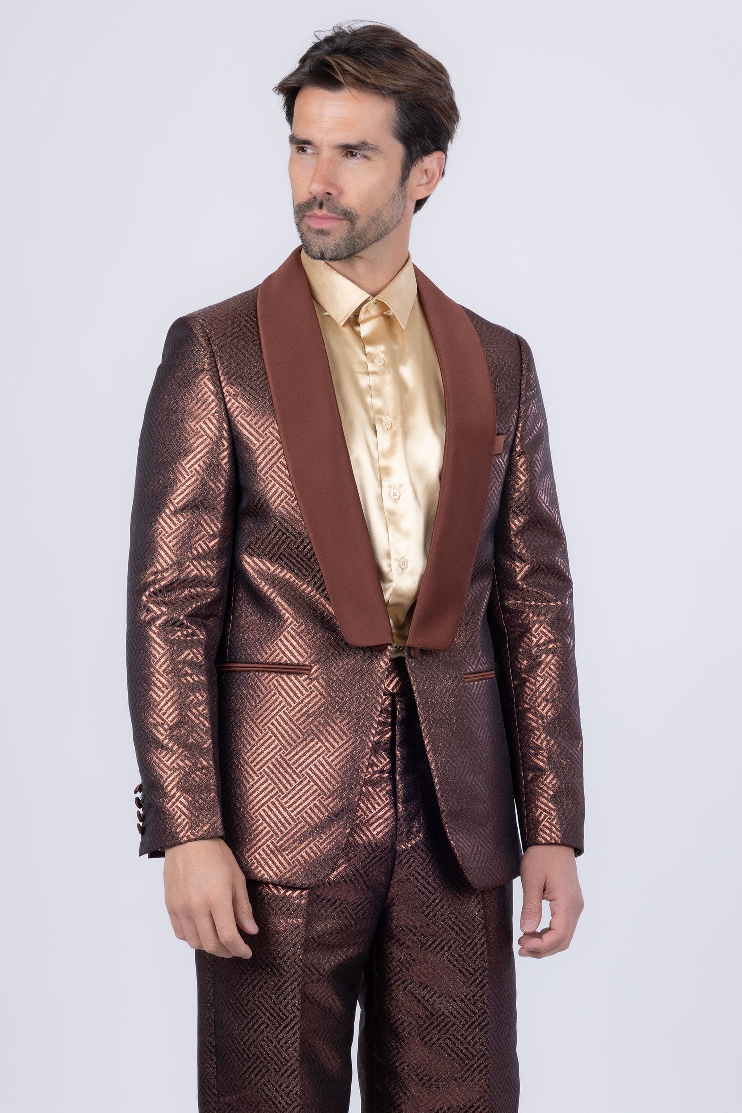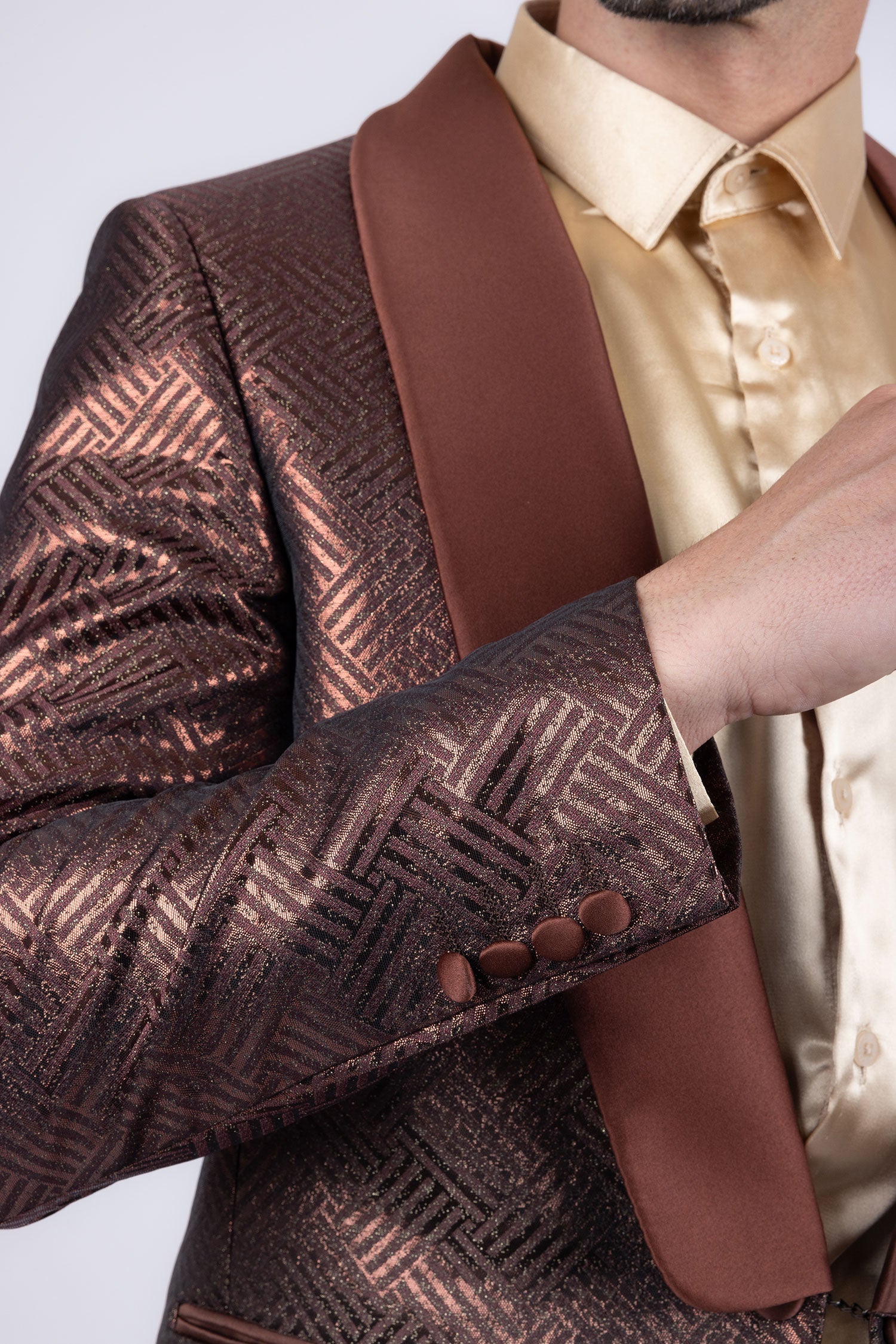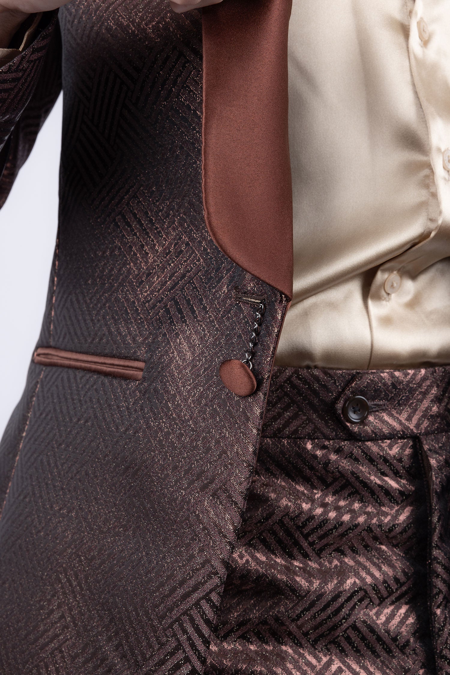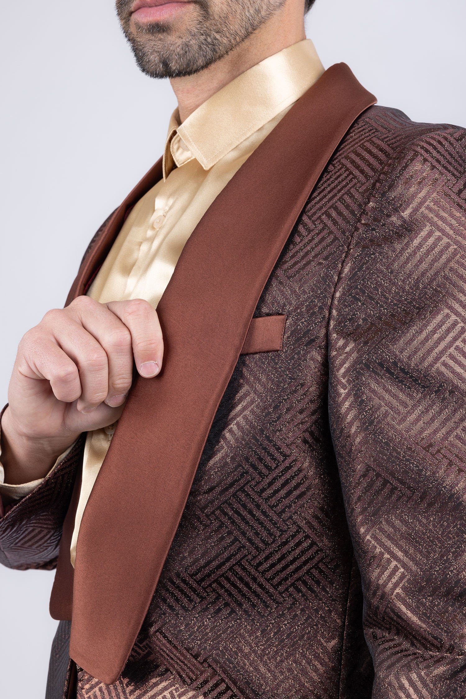 - Shiny satin shawl lapel