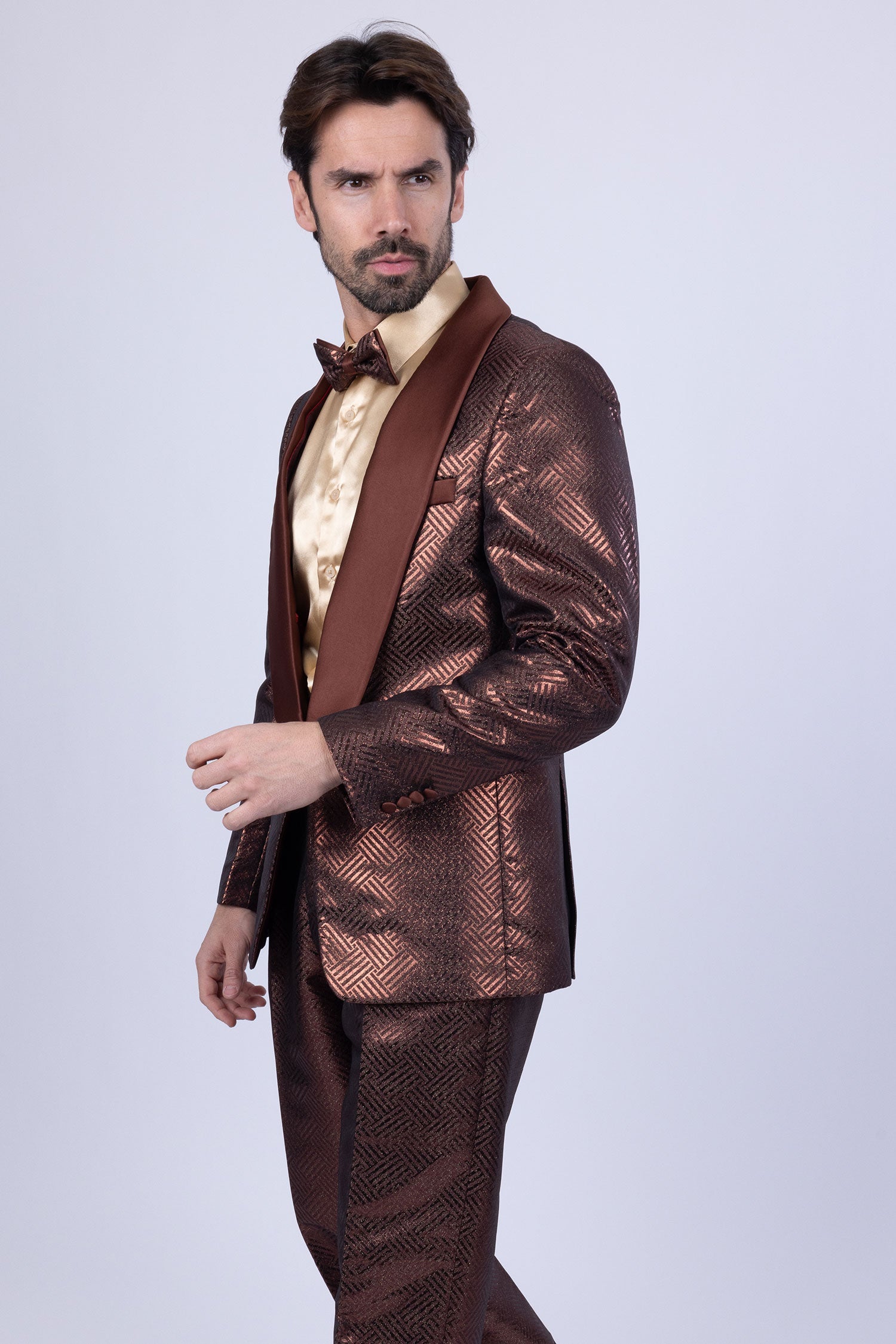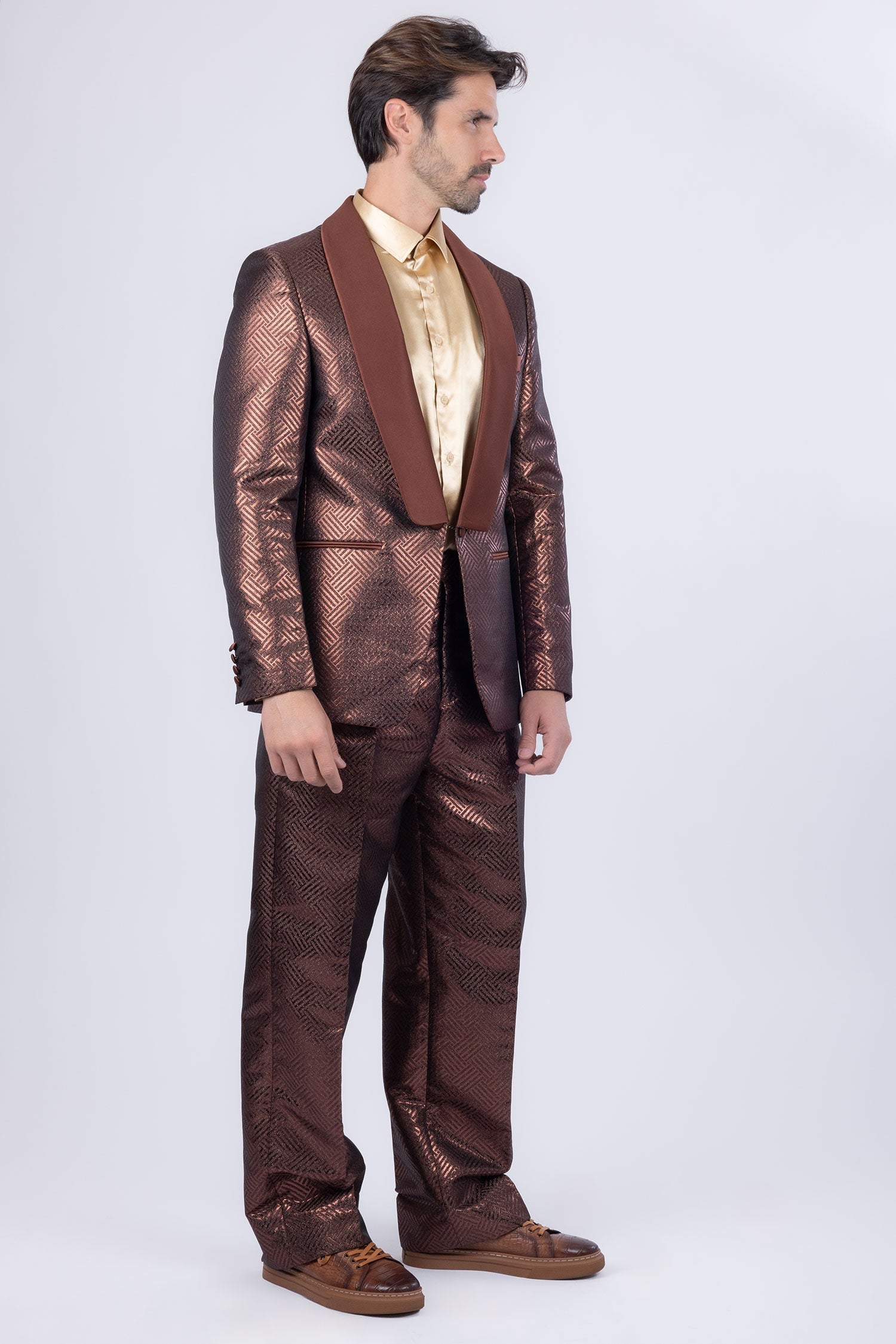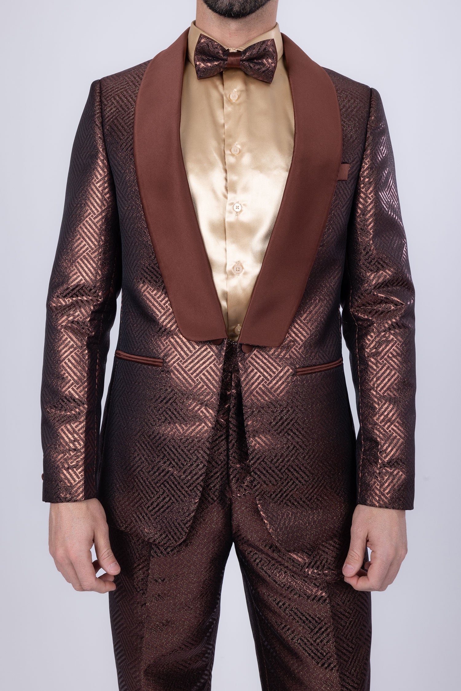 - Shiny satin shawl lapel