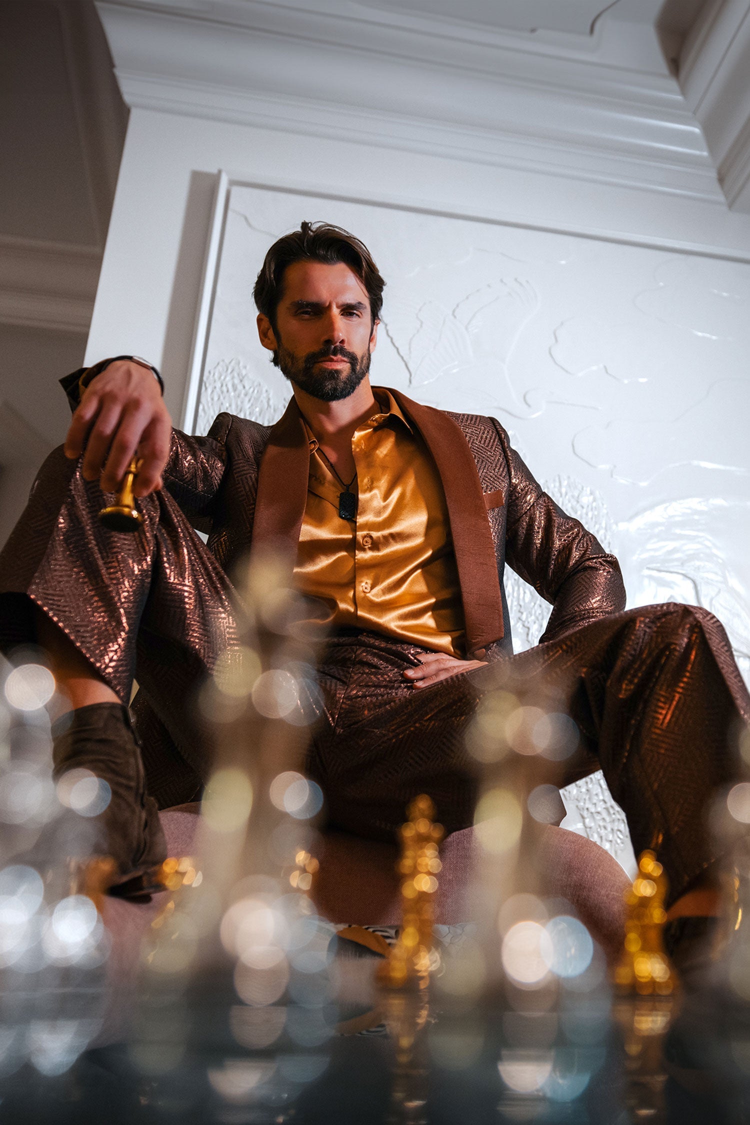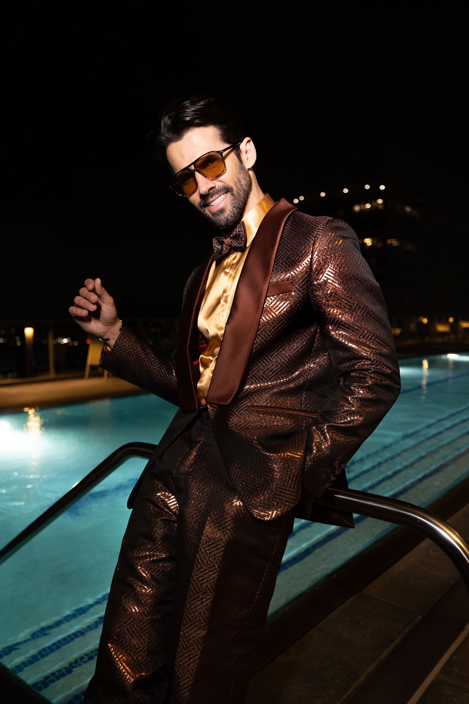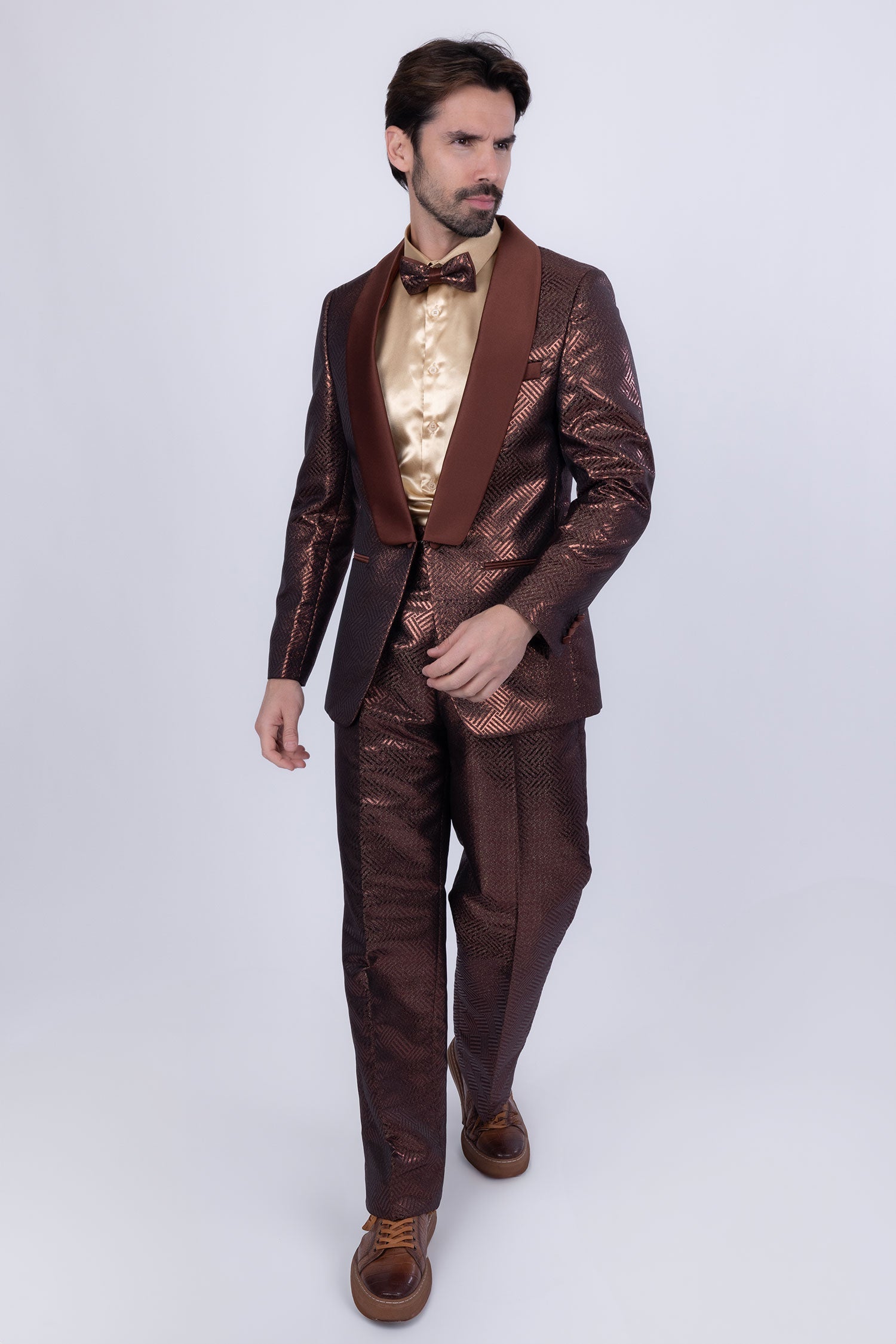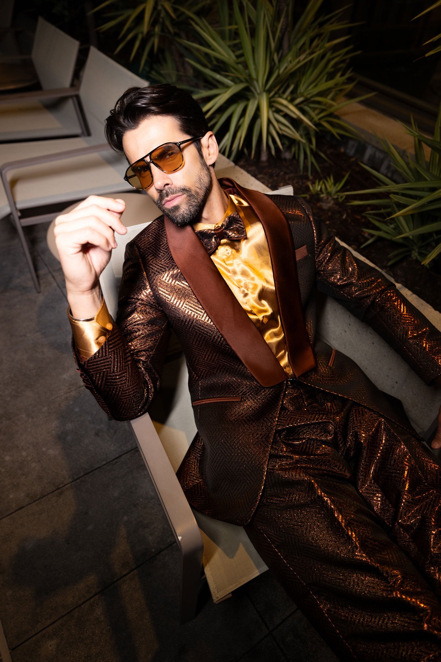 - Shiny satin shawl lapel