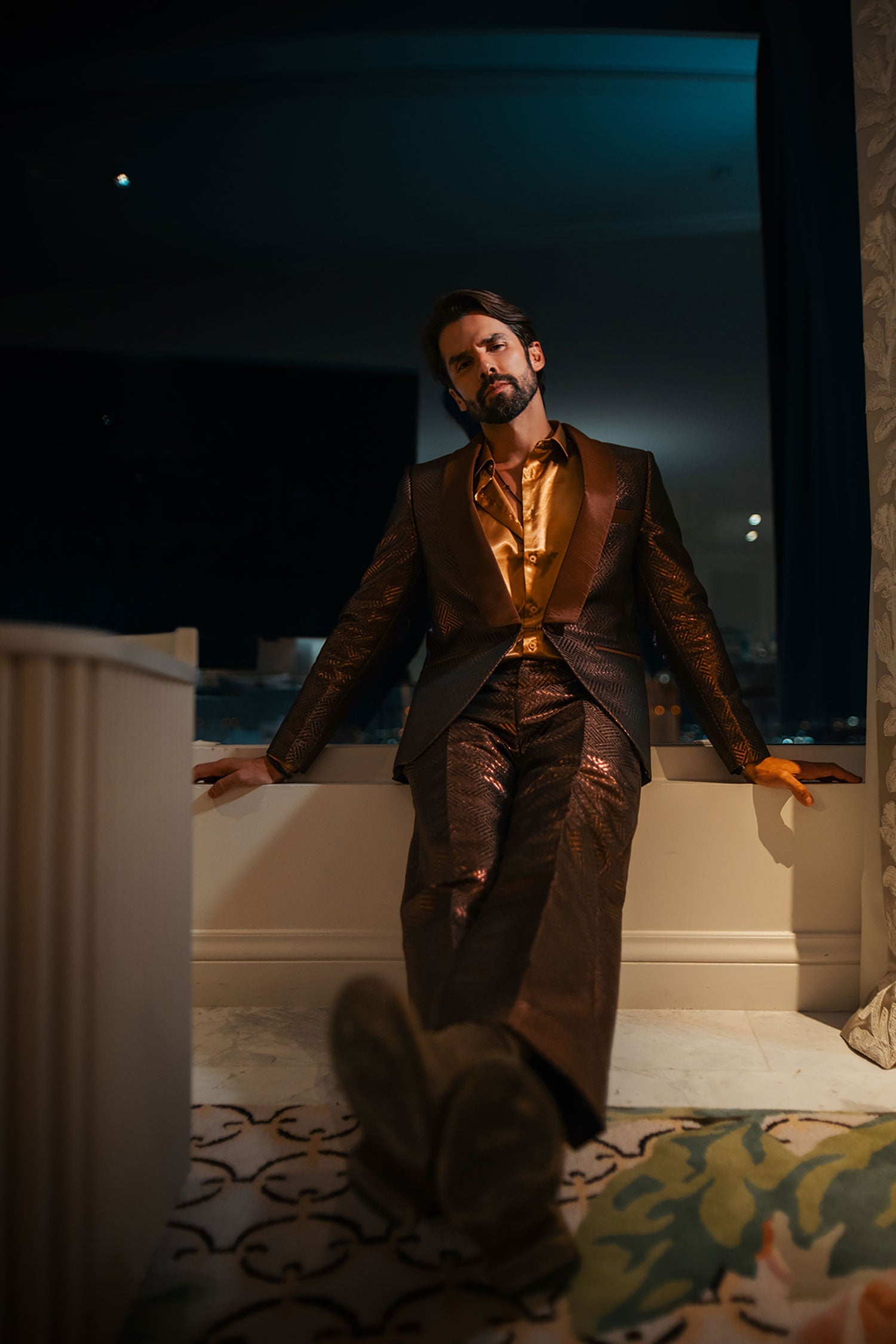 - Slim-Fit blazer and baggy pants