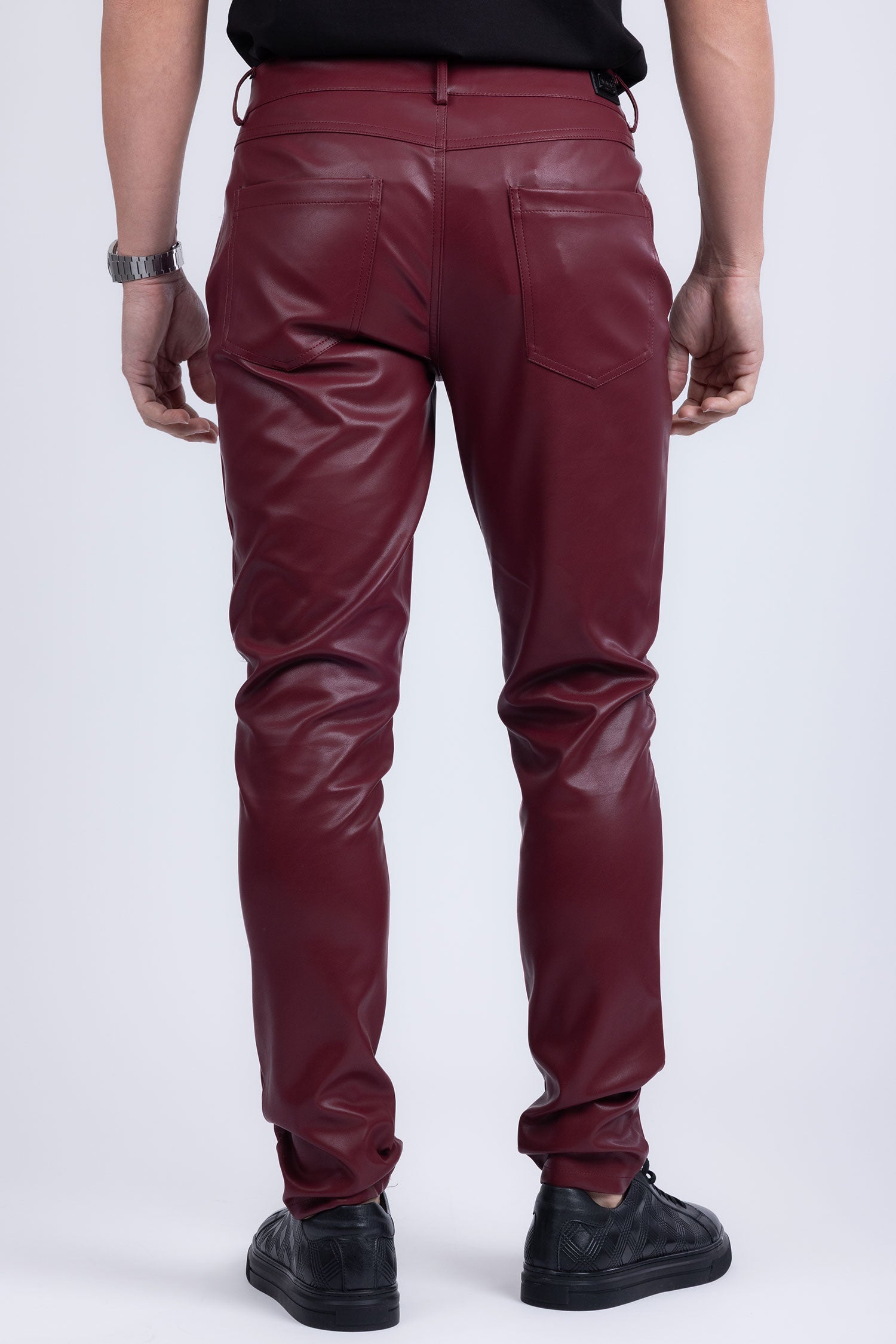 Barabas men's Geneva PU leather slim-fit pants feature innovative designs that prioritize comfort. Its stylish pattern adds versatility, making it the perfect match for a casual and active look when paired with a complementary shirt or jacket.