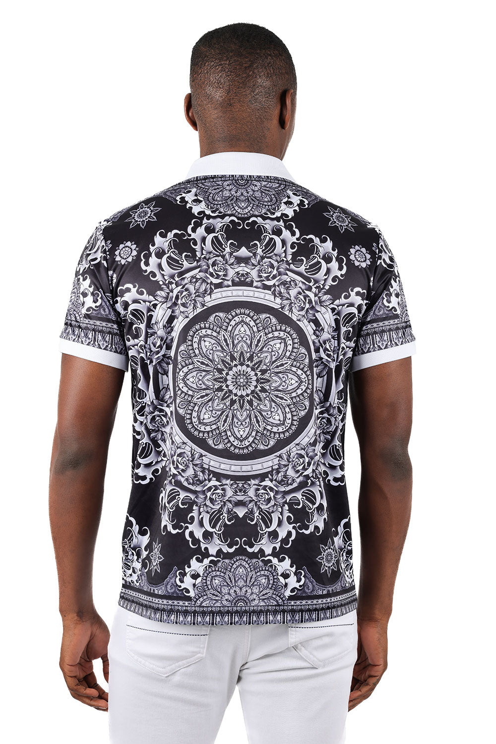 Step into a tropical island retreat, instantly, with the Barabas short-sleeve printed polo shirts made with our revolutionary cotton blend fabric. The lightweight fabric is contrasted with a ribbed collar and cuffs for comfort and a sophisticated edge. Perfect for any formal occasion.