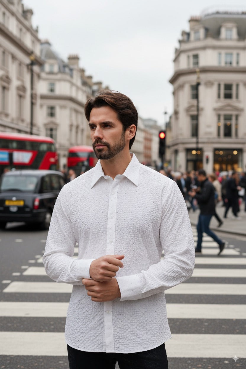 Update your wardrobe with the Barabas men's long-sleeve shirt. Elevate your style with this modern and luxurious piece, featuring a shiny rhinestone design and a practical button-up front. The innovative stretch fabric offers easy movement and versatility.