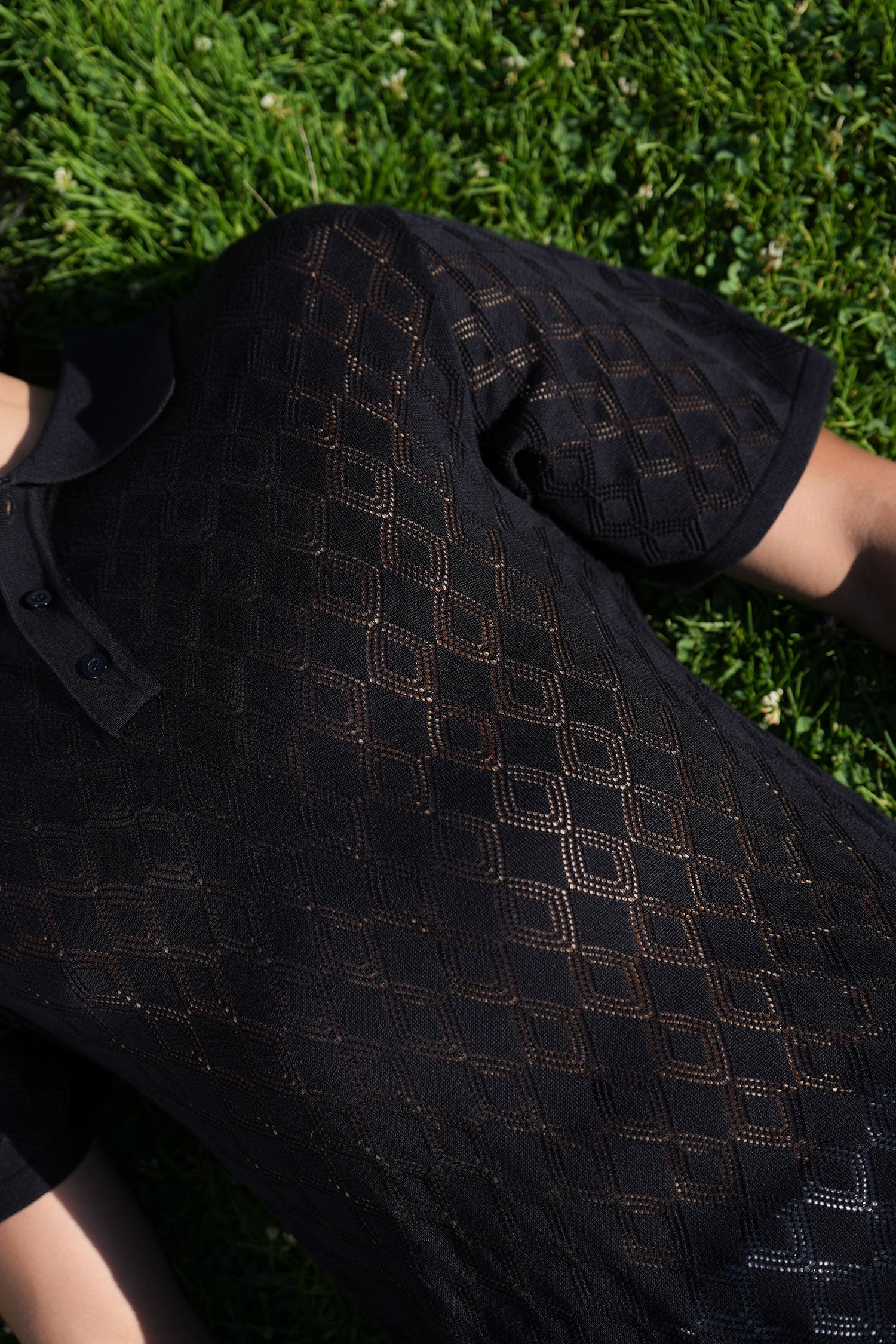 Discover the perfect balance of comfort and style with Lagos' transparent polo shirt. This high-quality shirt fuses a textured design with a sustainable construction, including a polo collar and contrasting button placket. Crafted from lightweight material, it highlights a unique collar shape and contrast detail on the 3-button closure.