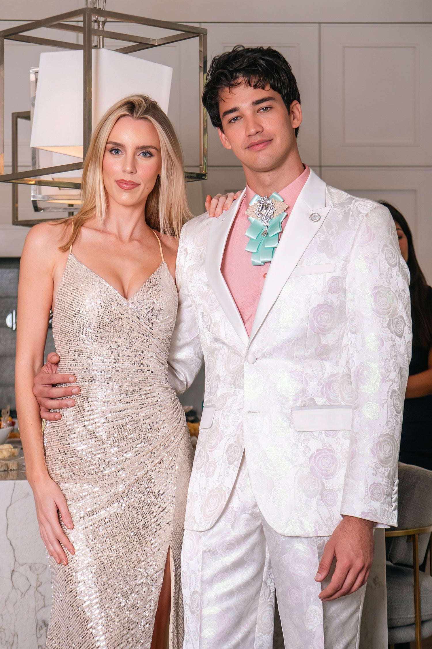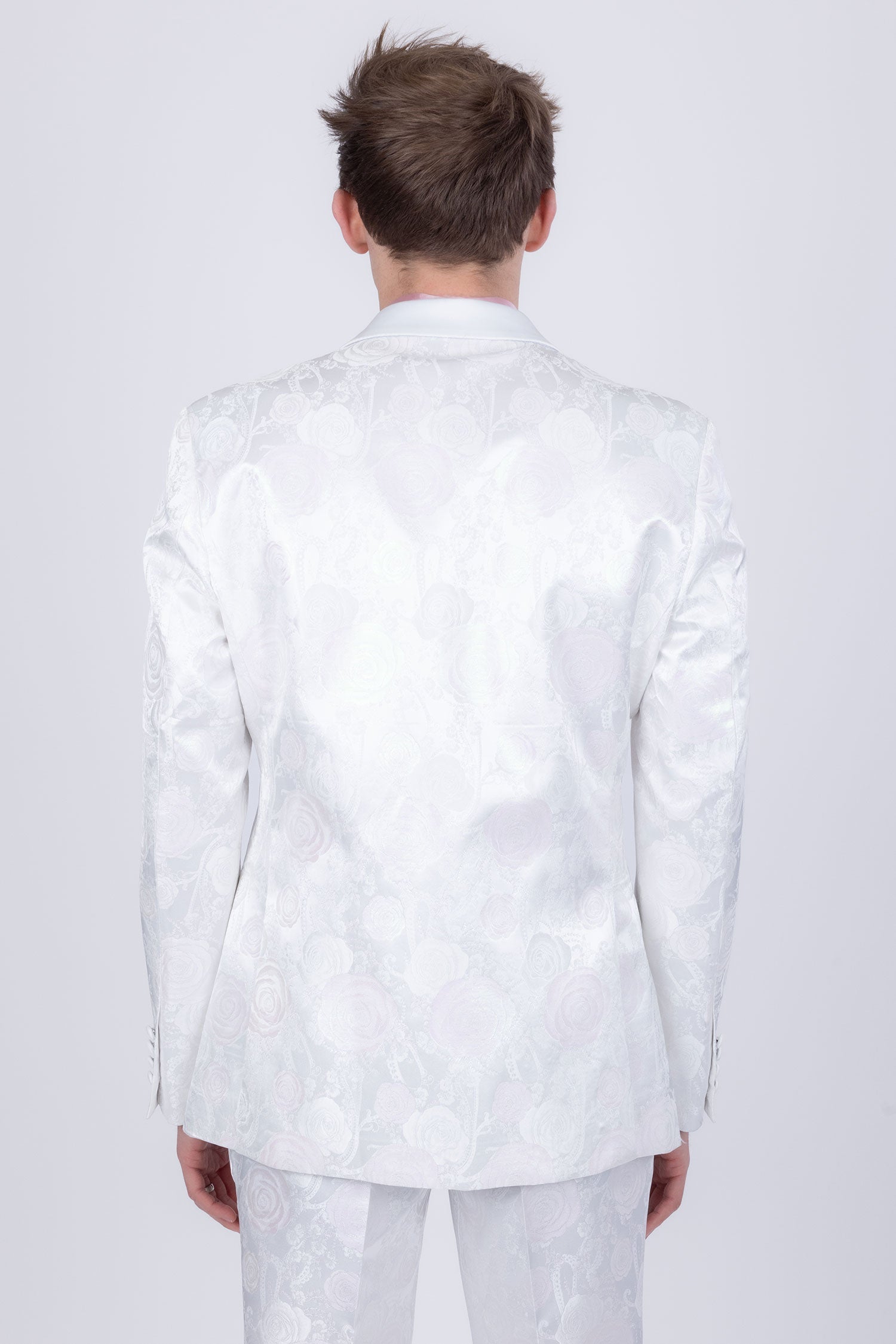 The Munich floral men's blazer boasts an elegant display of roses, elevating it above other options and exuding a strong, captivating presence. Its adaptable style seamlessly shifts from a refined suit when paired with matching trousers, to a relaxed vibe when paired with dress shirts.