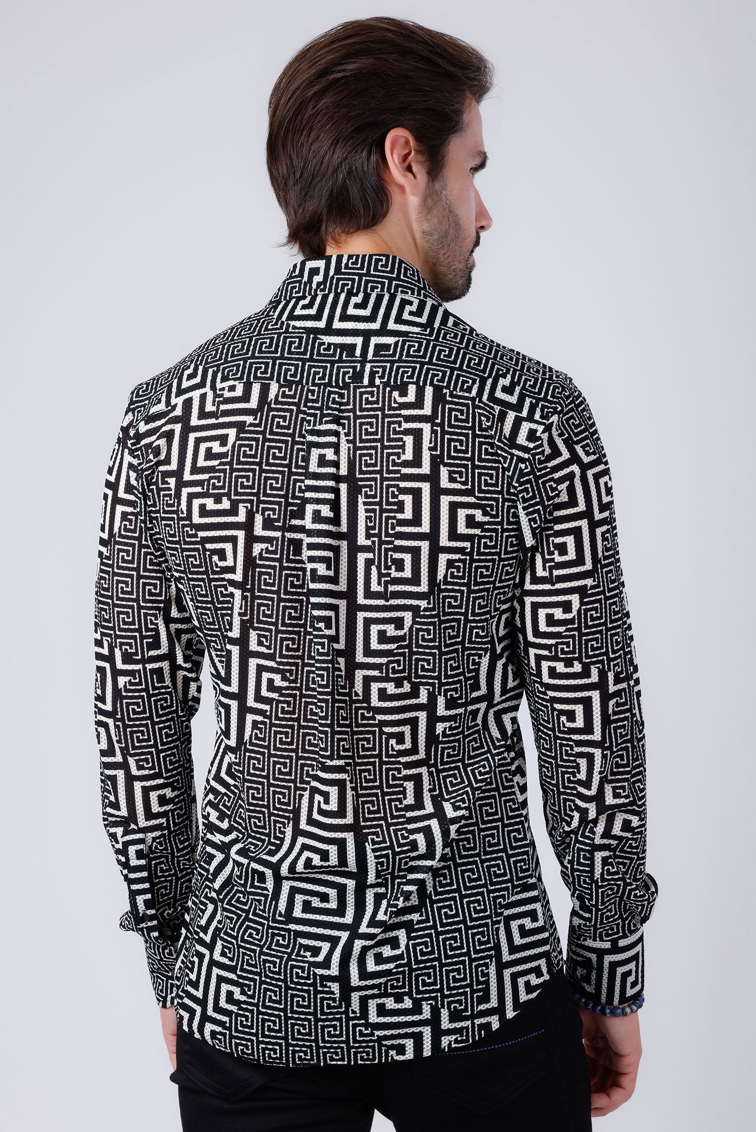 Enhance your fashion game with the Barabas Shenzhen Greek key pattern long sleeve shirt. The stylish Greek key pattern design adds a hint of refinement, while the versatile fabric guarantees comfort all day long. This dress shirt seamlessly combines luxury with modern style, making it a must-have in your collection.