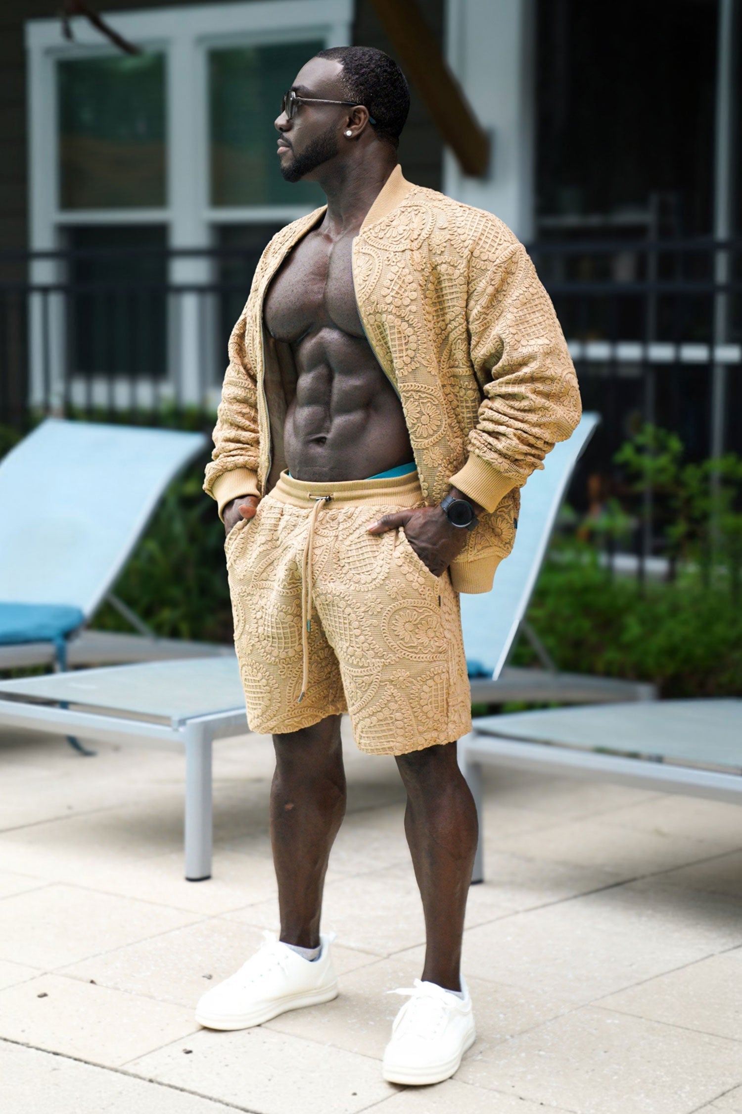 The Pune Paisley Bomber Jacket is a fashionable and comfortable lightweight bomber jacket, expertly combining a geometric pattern with a stretch fabric exterior. It strikes the perfect balance between bold fashion and cozy wear, making it a versatile addition to any wardrobe. Whether styled with jeans for a more casual look or paired with shorts for a dressier outfit, this jacket is sure to make a statement.