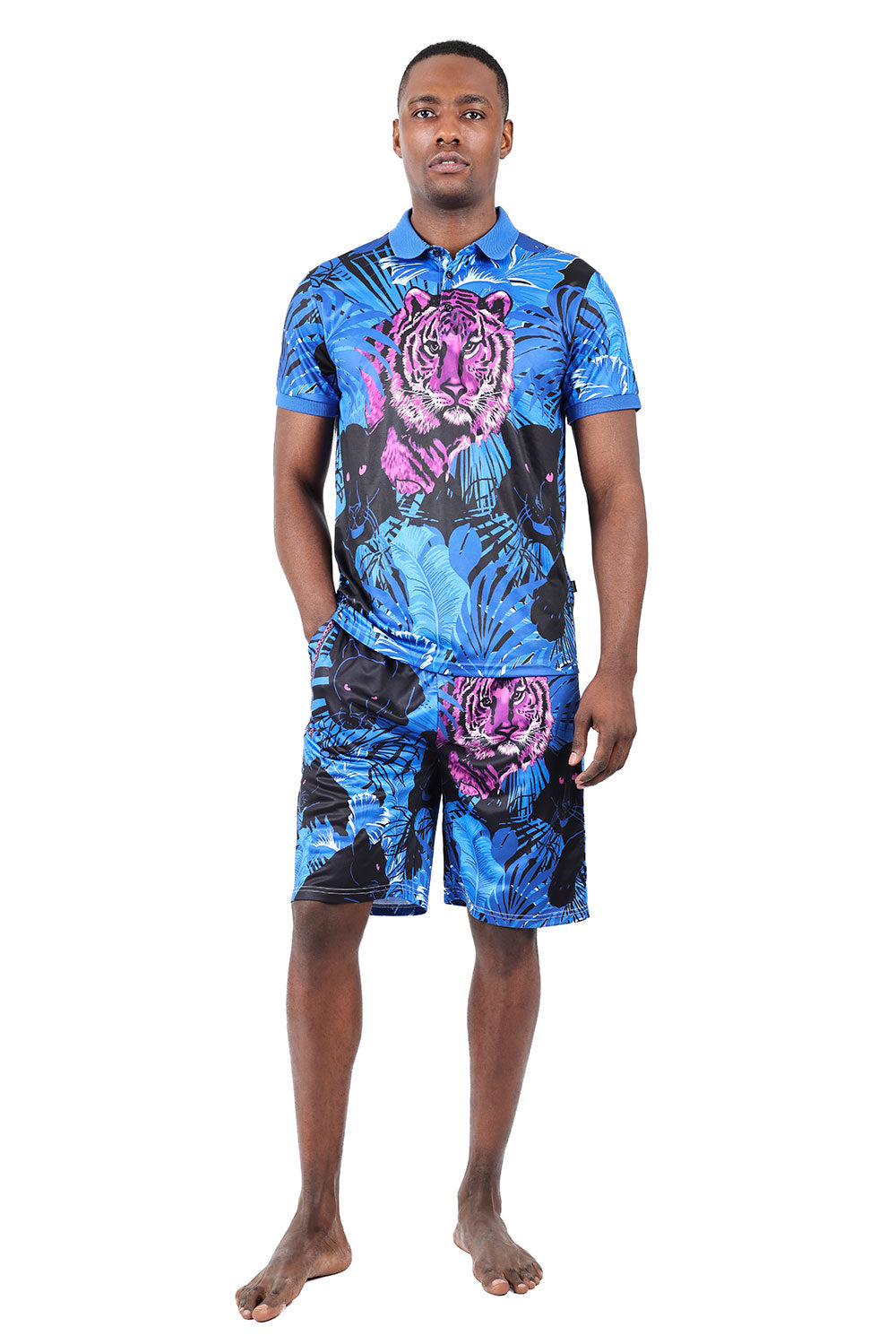 Barabas men's short-sleeve polo shirt offers a high-quality printed tiger and floral design, as well as a contrasted collar and three-button closure, all crafted from a lightweight fabric.