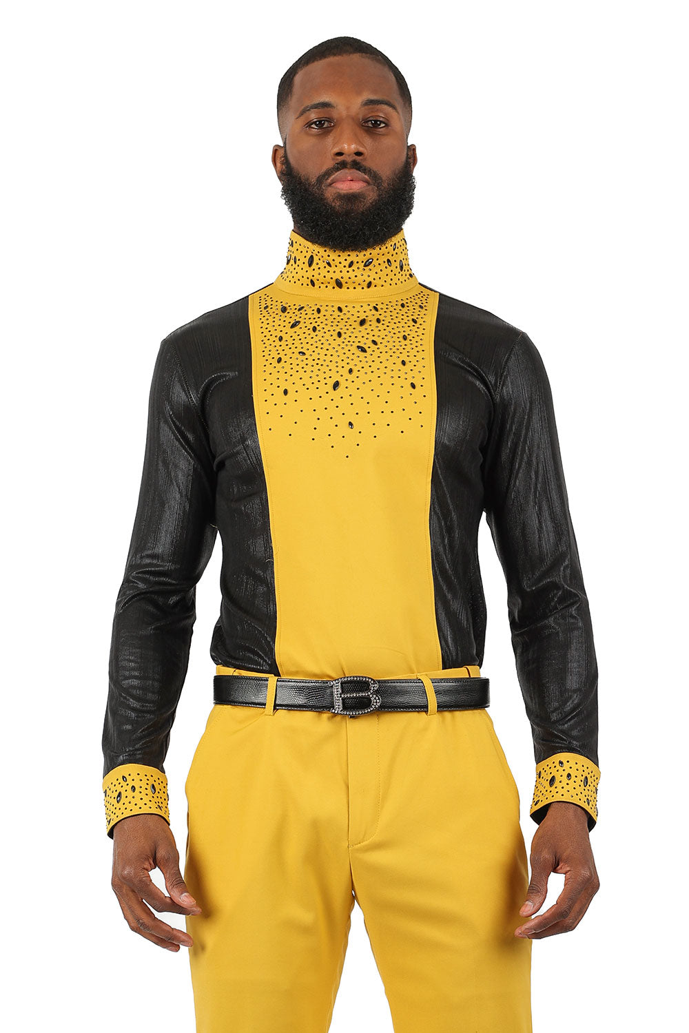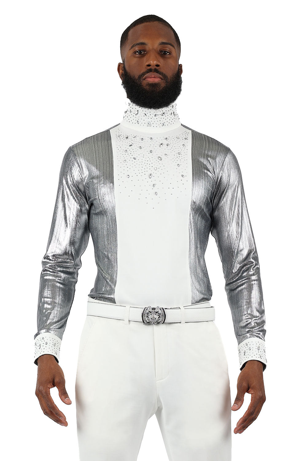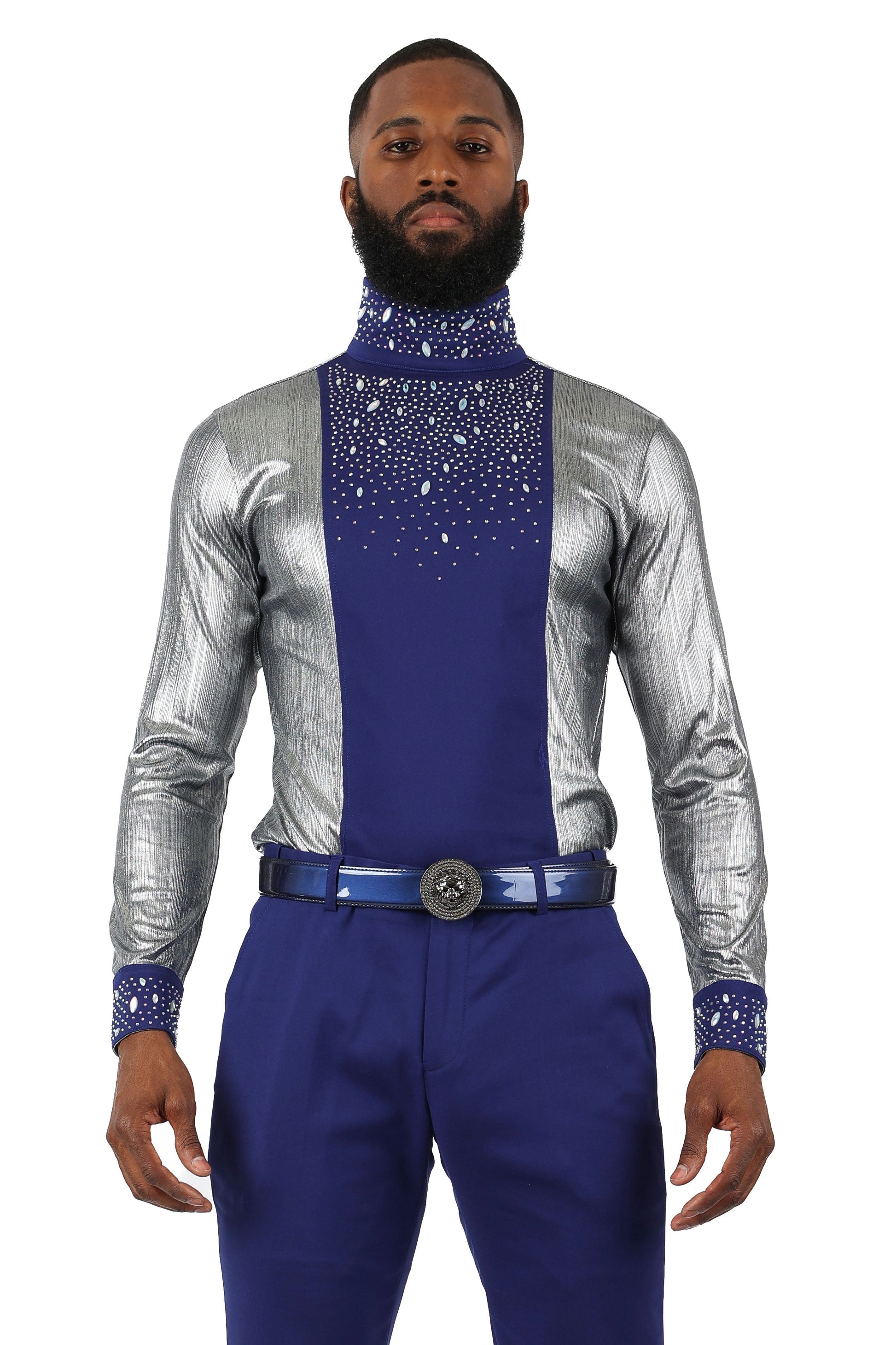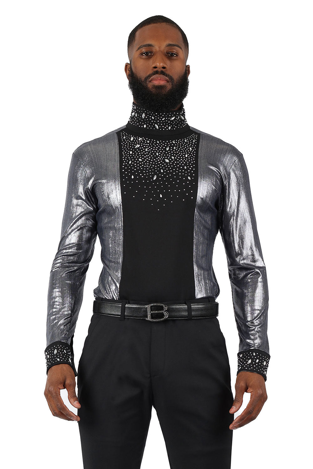 A stage effect men's rhinestone turtle neck with a high-quality design and great lining. You can show your personality at parties, proms, and other occasions. This long sleeve turtleneck sweater represents the rainfall drops on your shoulder and that will give you the glow like a star.