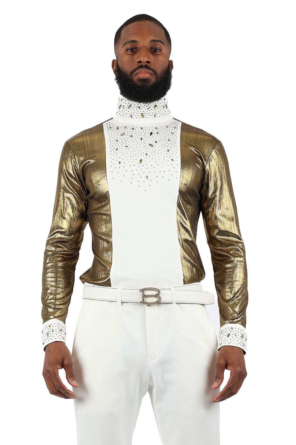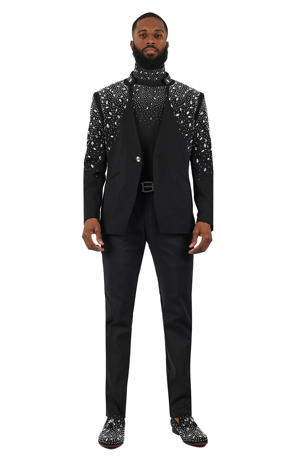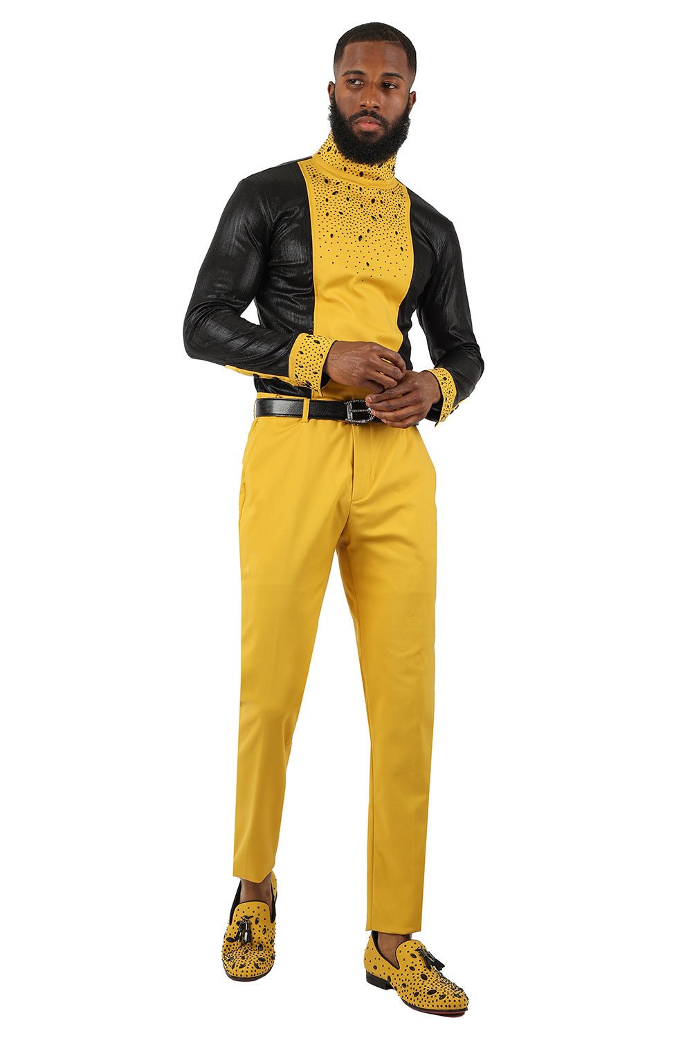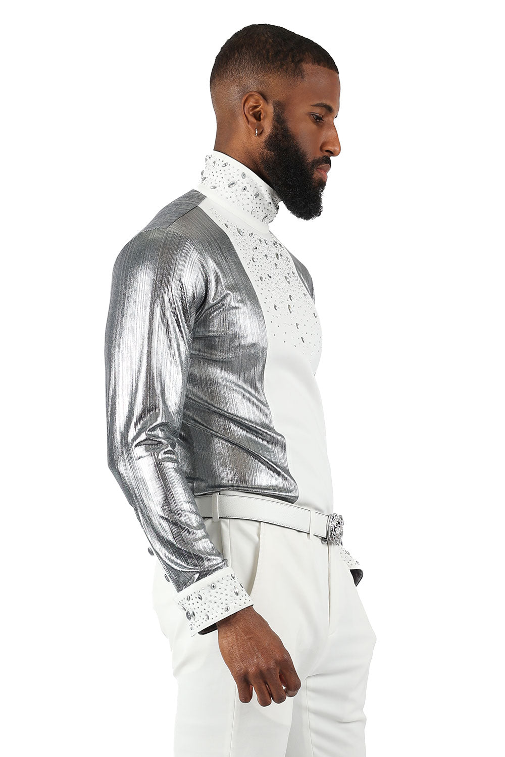 A stage effect men's rhinestone turtle neck with a high-quality design and great lining. You can show your personality at parties, proms, and other occasions. This long sleeve turtleneck sweater represents the rainfall drops on your shoulder and that will give you the glow like a star.