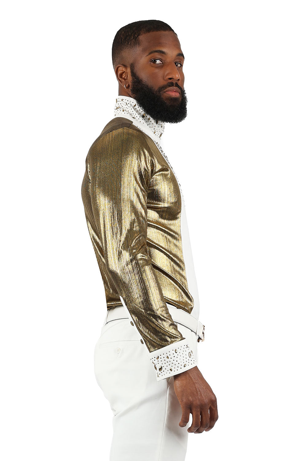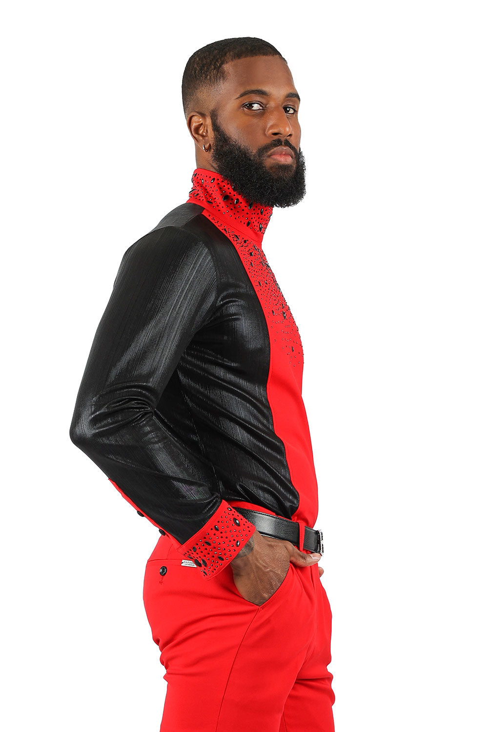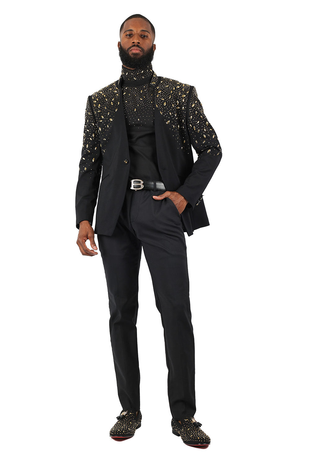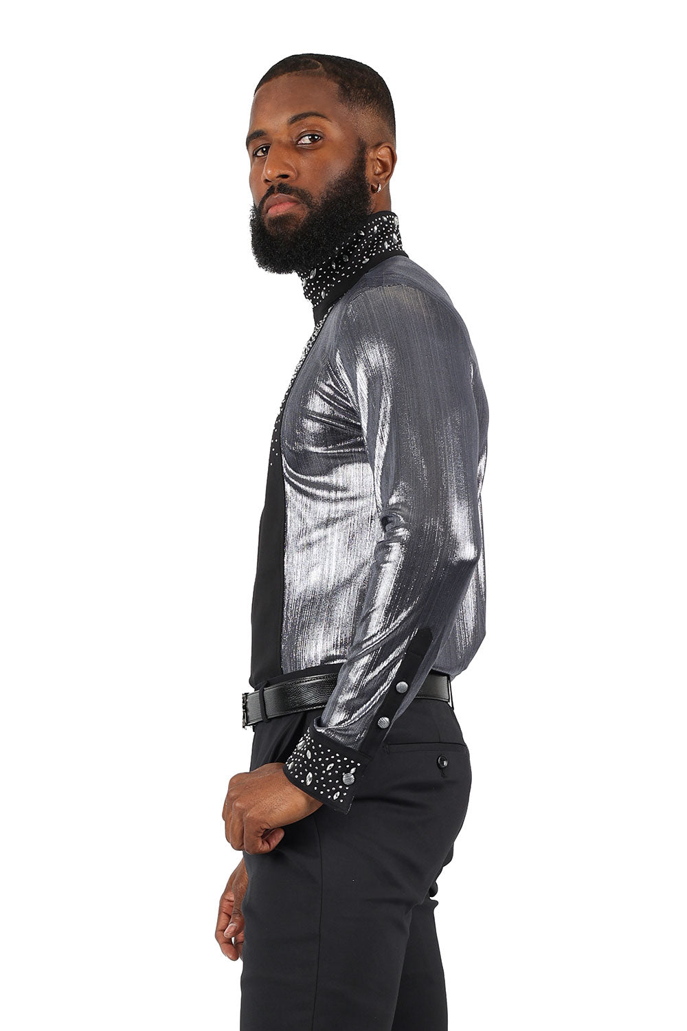 A stage effect men's rhinestone turtle neck with a high-quality design and great lining. You can show your personality at parties, proms, and other occasions. This long sleeve turtleneck sweater represents the rainfall drops on your shoulder and that will give you the glow like a star.