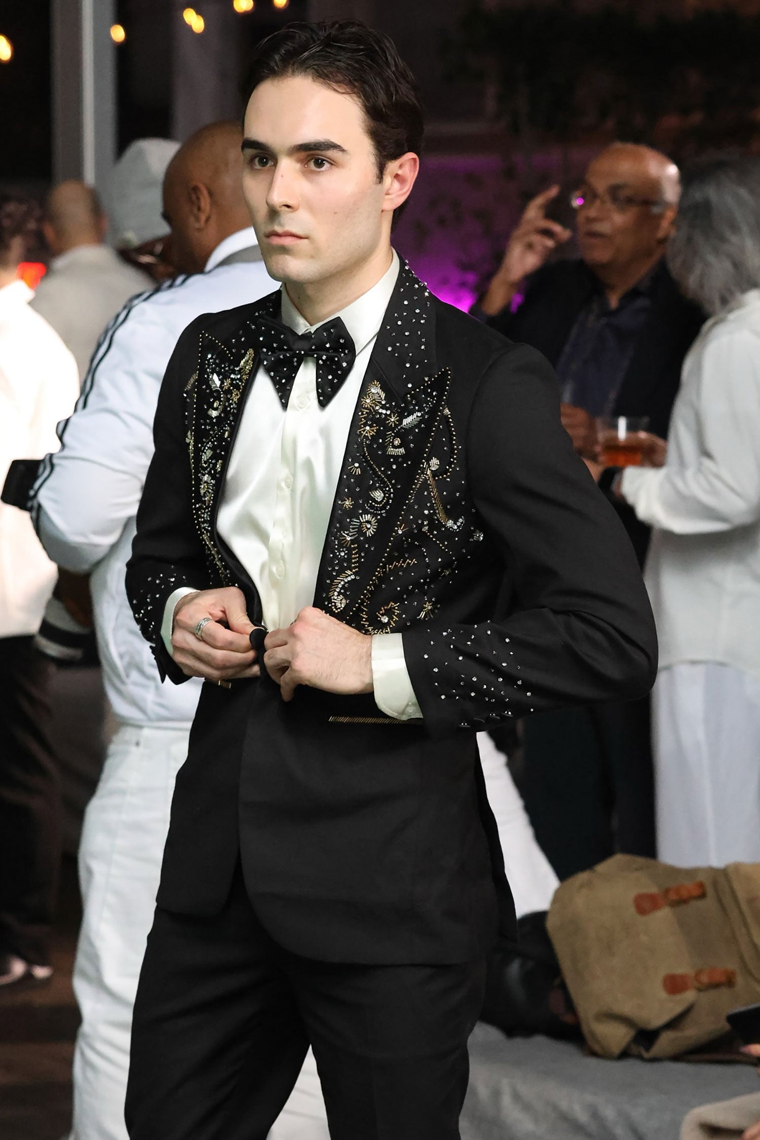 Introducing the Tullina Suit by Barabas - a must-have for every contemporary gentleman's wardrobe. This expertly designed suit features a classic and refined appearance, enhanced with a floral pattern rhinestones blazer and comfortable trousers. Perfect for professional settings, weddings, and special events, it exudes elegance and sophistication. Elevate your style with the Tullina Suit.