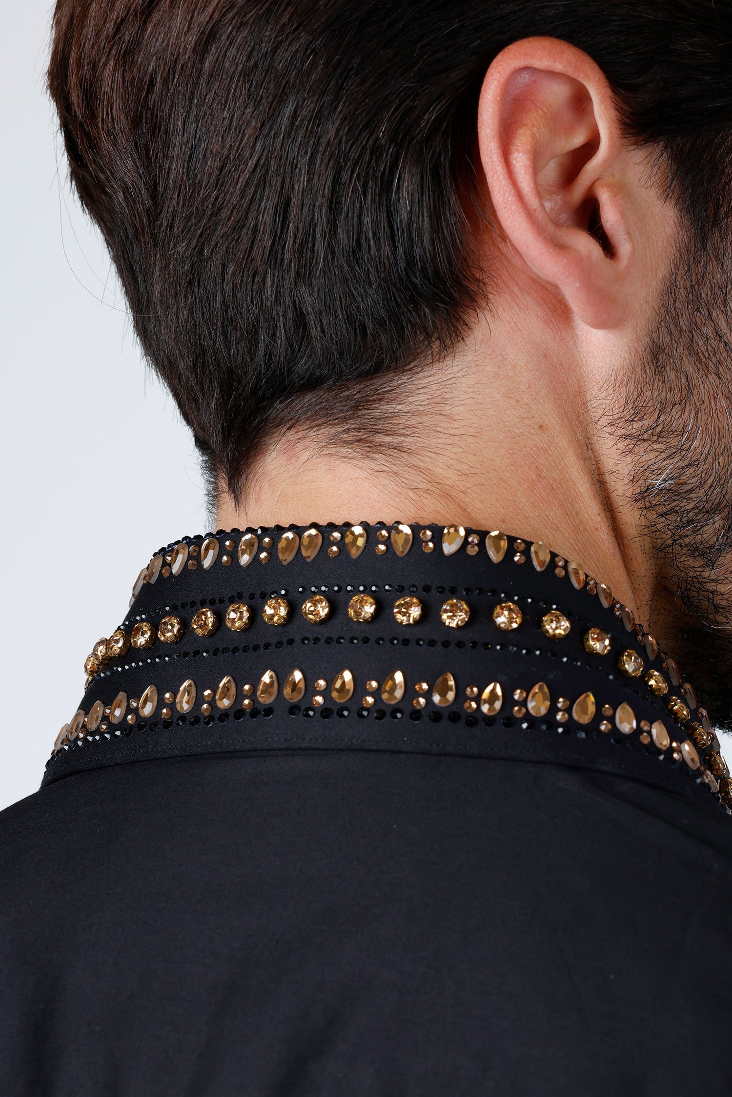 Introducing the Barabas men's long-sleeve shirt, a modern and luxurious addition to your wardrobe. This stylish piece features a shiny rhinestone design and a practical button-up front. The innovative stretch fabric allows for easy movement and versatility. Elevate your style and stand out from the crowd with Velcia Long Sleeve Shirt.