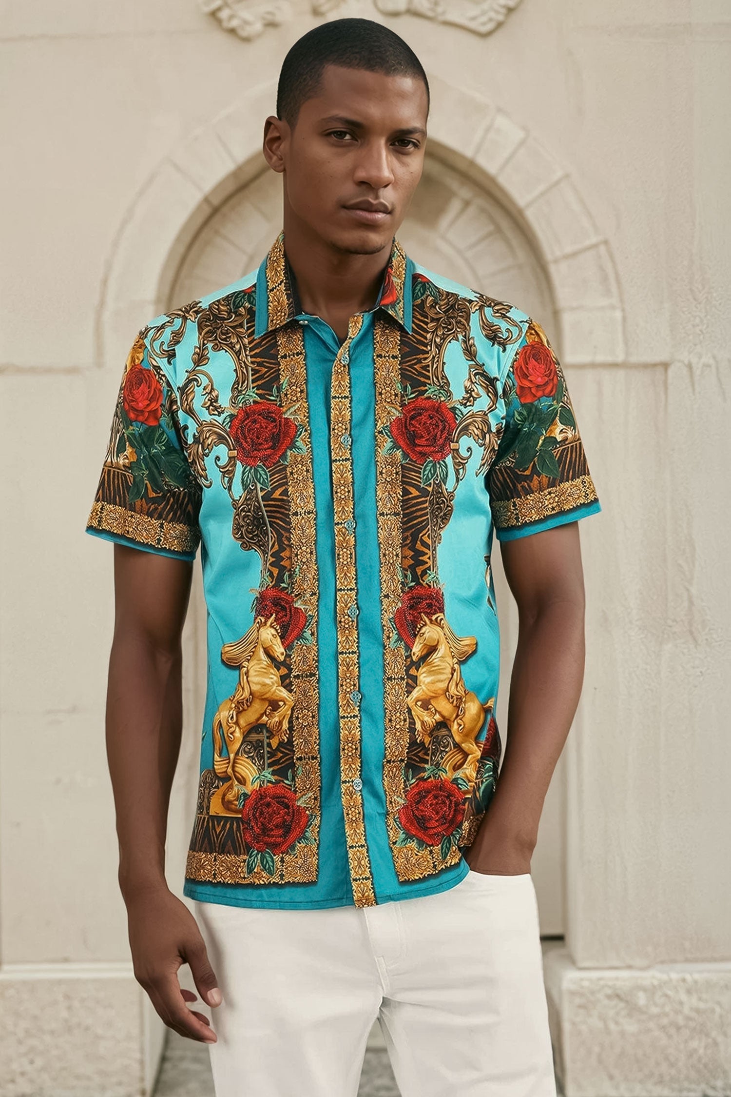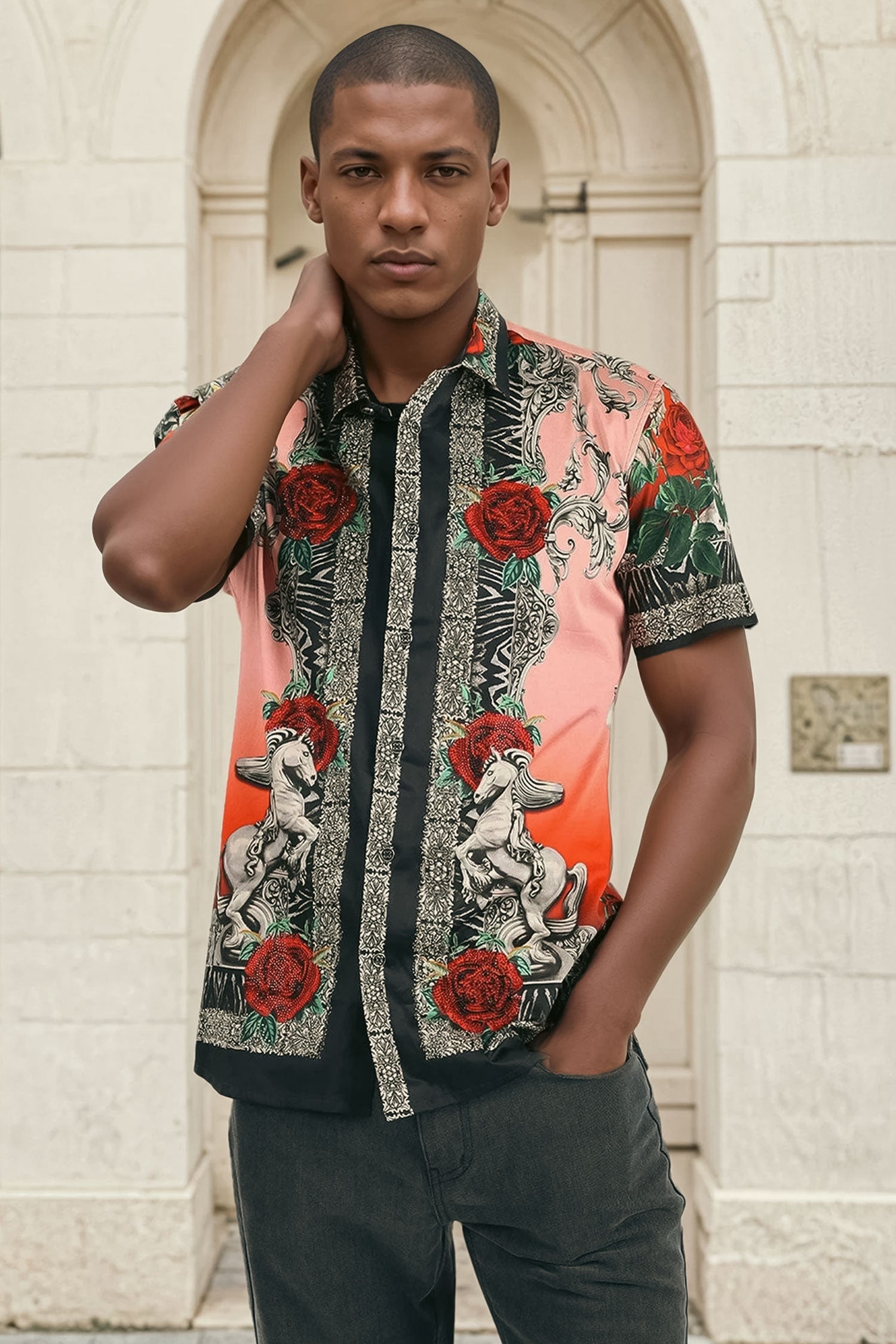 Barabas men's Wildflower Wrangler offers men's short sleeve shirts, crafted from a high-quality cotton blend fabric for both luxury and lightweight feel. The unique floral and animal leopard print designs provide a new fashion trend for casual and formal occasions.